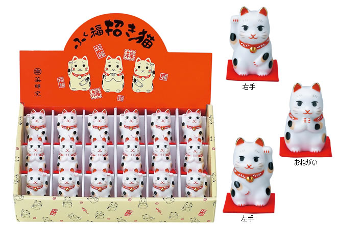 開運 招福 和の縁起物彩絵ふく福招き猫ディスプレイセット価格: 6,811円レビュー評価: 0.0 レビュー数:0 サイズ:18個入(右手・おねがい・左手各6個) 高さ 各4cm 箱寸法高さ 4.5cm×横巾23cm運を開き福を招く縁起の良い置物や昔なつかしい土鈴風情を楽しむ香炉など和のたのしさいろいろお届けします。楽天国際配送対象商品(海外配送)詳細はこちらです。 Rakuten International Shipping Item (Since the end of June 2008)Details click here※御注意くださいこちらの商品は当店には在庫が無く、ご注文を受けてから発注し、取り寄せております。よって現在購入可能となっておりましても上記理由によりお客様が購入後、在庫切れの旨をお伝 |