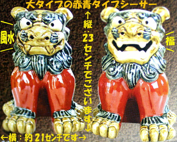 【送料無料】不景気なんか吹きとばせ!楽天市場で人気のシーサーちゃん達!当店からシーサー伝説が始まりました。金運UP!開運!魔除け!風水に!赤青ビッグ!素焼きシーサー!←クリックすると大きくなるよ♪