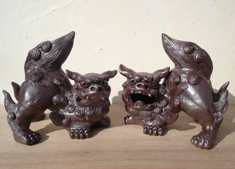 邪気退散!魔除けのシーサーです!念のこもった沖縄産!照屋晴美 黒釉ホーヤーシーサーペア価格: 23,835円レビュー評価: 0.0 レビュー数:0 現代沖縄陶芸展、優秀賞などいくつもの賞を受賞し高い評価を受ける陶芸家さんです!つやを抑えたマットな質感は伝統工芸という重みが感じられます。完全手作りでこまかい顔の表情、筋肉の動きなどの表現がすごい!巻き毛のなびく感じが疾風の如く駆け抜ける獅子って感じです♪巻き毛の渦もさすがは手びねり!立体感があります!ボディーを造形していく過程で渦の角度、巻き具合、大きさ、バランス、全てにおいて作者のこだわりが感じられます♪こだわり派の方には、一目見て即購入に至るケースが多いようです!わかりますその気持ち(^-^)ショップスタッフもヒトメボレで入荷した作品ですから♪人気作家さんのため、予約販売となります。完成 |